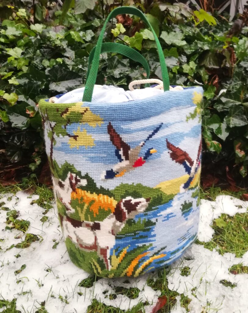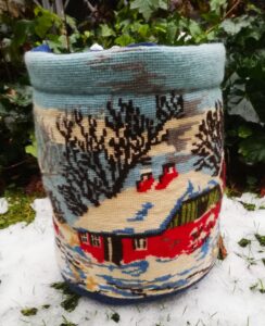 Strikketaske med motiv fra dengang, der var (rigtige) vinterlandskaber til! Vejledning fra sygal