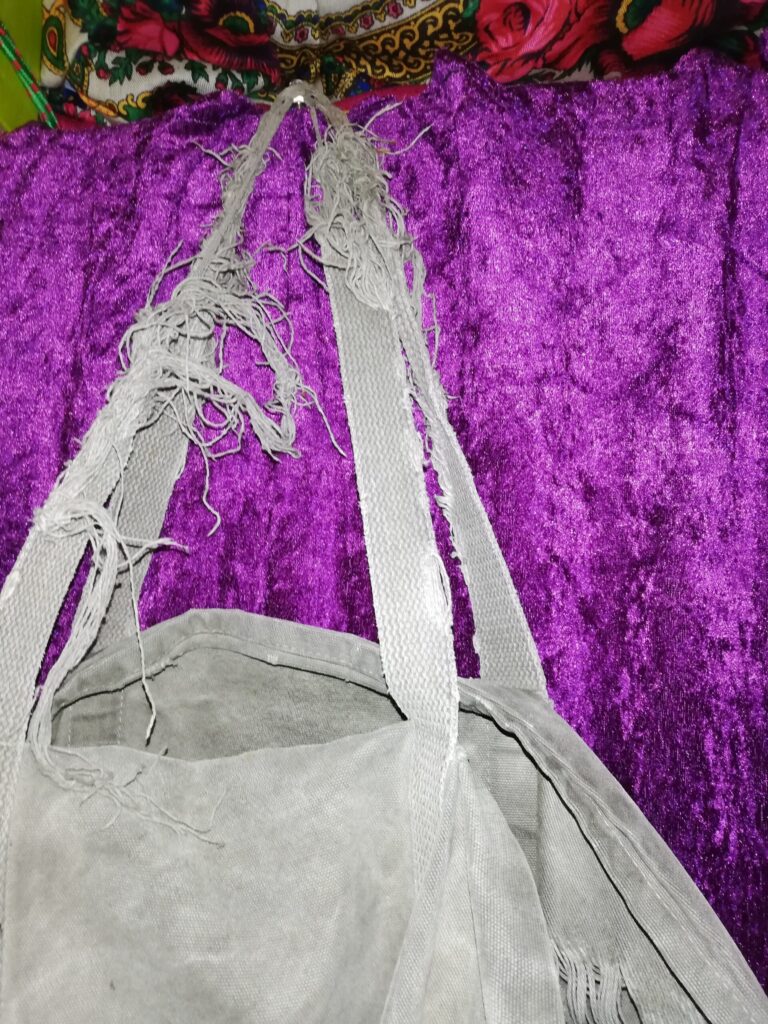 Isbjørnetaske. Fundet i en affaldscontainer i dårlig stand. Jeg vaskede og sprættede den op og udskiftede bund og (delvis) hanke. Den blev foræret til en garvet Svalbard-rejsende